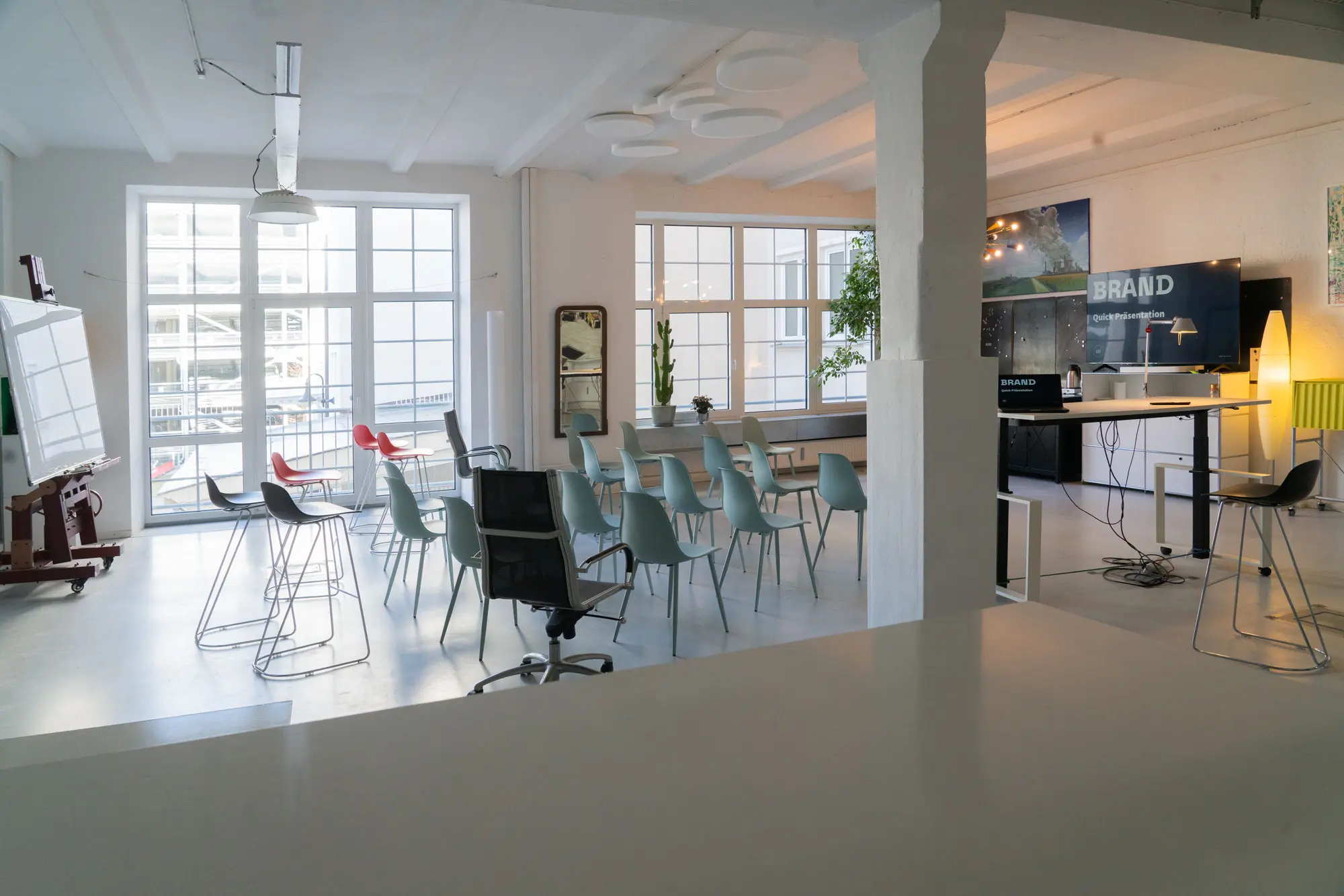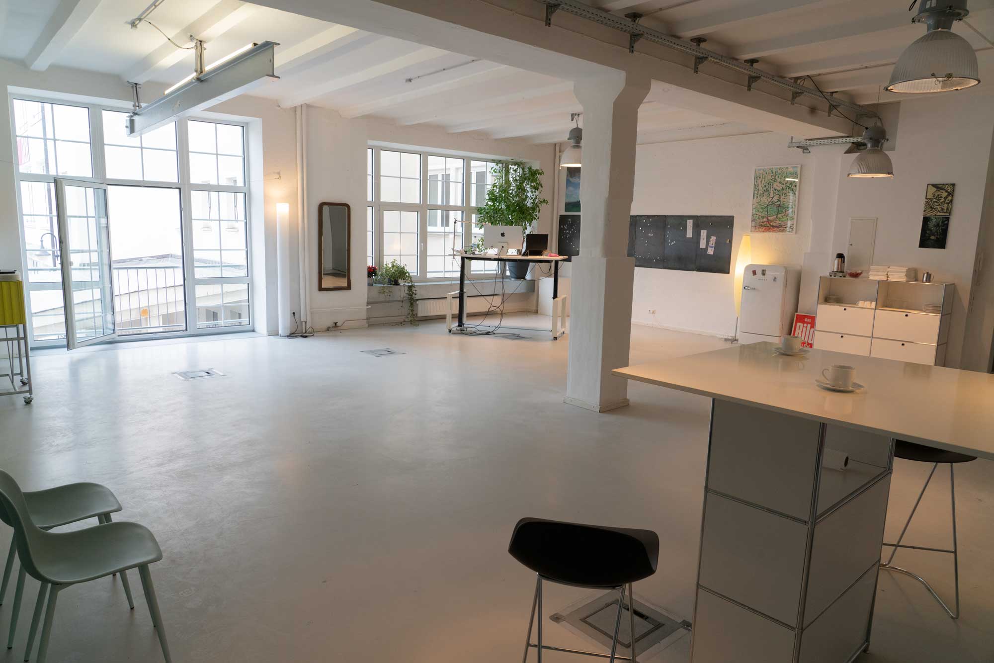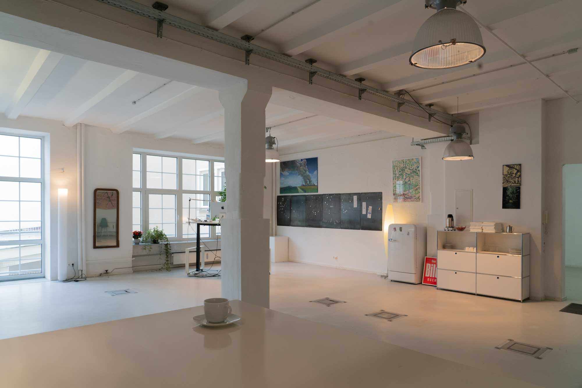 Gemeinsam mit verschiedenen Künstlern und Fotografinnen haben wir hier unsere Räume. Unseren großen Meeting- und Veranstaltungsraum und das Foyer bieten wir allen an, die Räumlichkeiten im Berlin-Loft-Style in München suchen. Es ist immer jemand von uns für dich vor Ort. Falls du Fragen oder Wünsche hast.