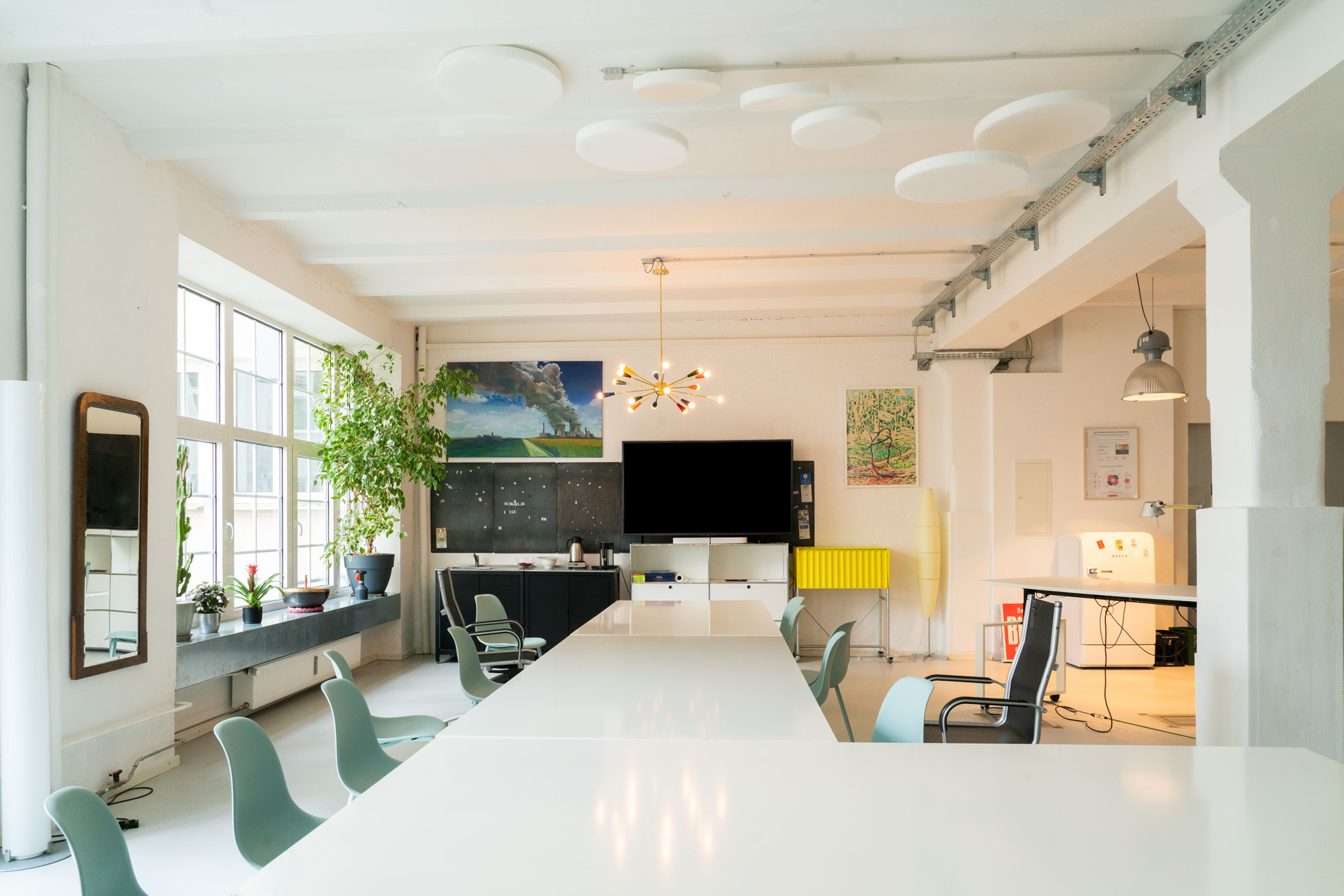 Gemeinsam mit verschiedenen Künstlern und Fotografinnen haben wir hier unsere Räume. Unseren großen Meeting- und Veranstaltungsraum und das Foyer bieten wir allen an, die inspirierende Räumlichkeiten mit kreativer Atmosphäre in München suchen. Es ist immer jemand von uns für Sie vor Ort. Falls Sie Fragen oder Wünsche hast.