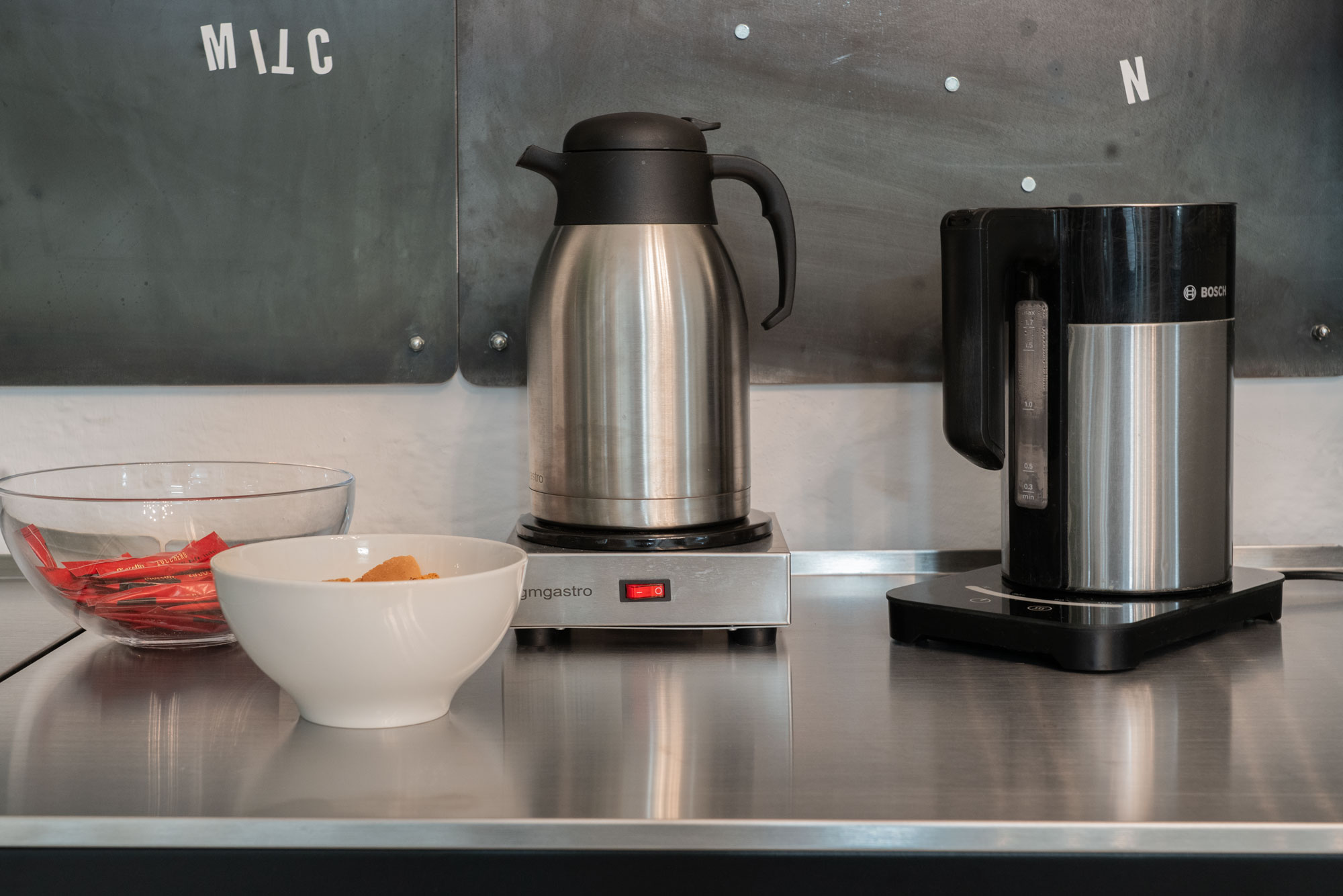 Ein produktiver Tag in einem Workshop Raum in München braucht die richtige Energie. In der Silberstreif Location sorgen wir dafür, dass es Ihren Teilnehmern an nichts fehlt. Säfte, Mineralwasser, frisch gebrühter Kaffee und verschiedene Tees sind bei uns bereits in der Getränkepauschale inbegriffen.