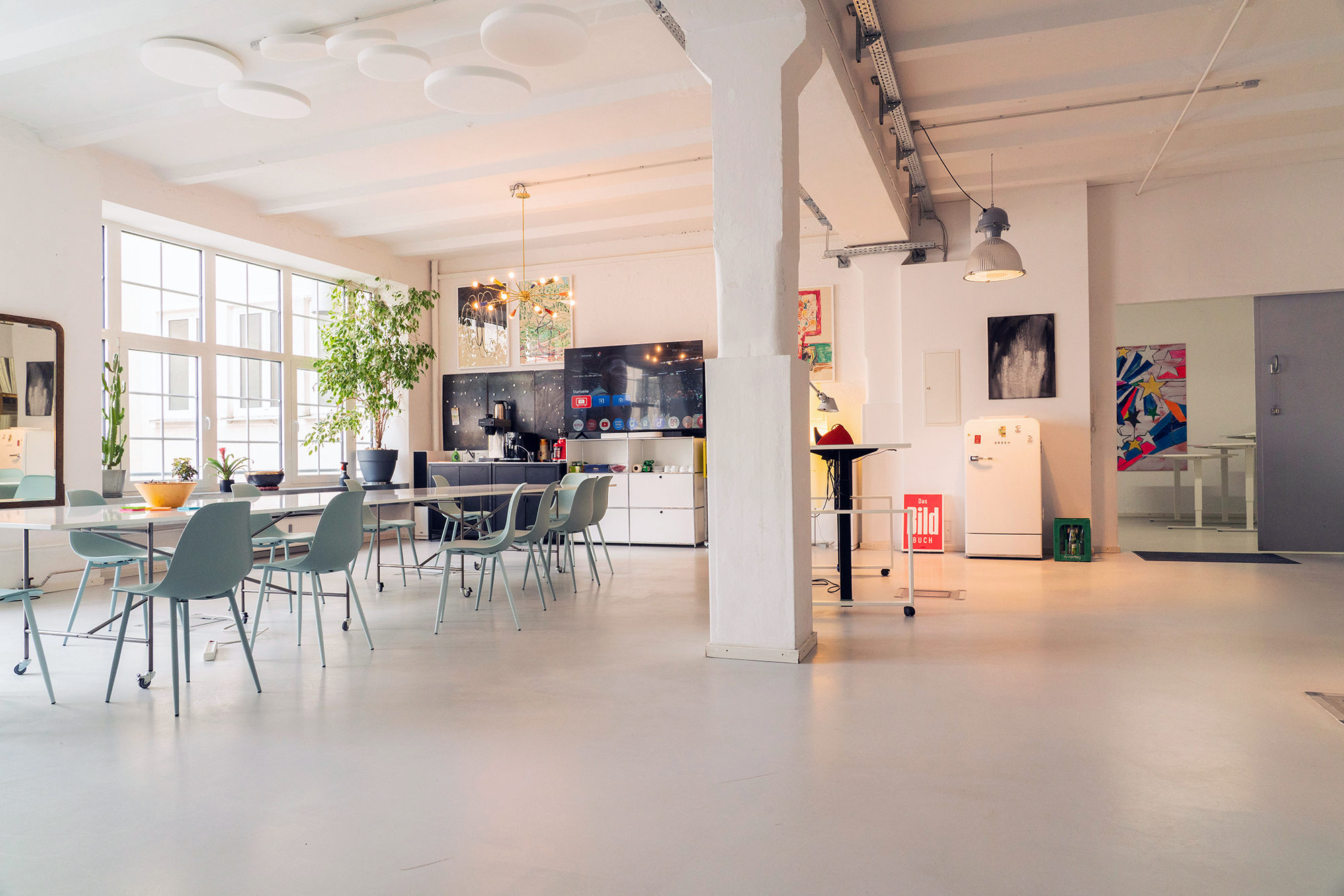 Gemeinsam mit verschiedenen Künstlern und Fotografinnen haben wir hier unsere Räume. Unseren großen Meeting- und Veranstaltungsraum und das Foyer bieten wir allen an, die inspirierende Räumlichkeiten mit kreativer Atmosphäre in München suchen. Es ist immer jemand von uns für Sie vor Ort. Falls Sie Fragen oder Wünsche haben.